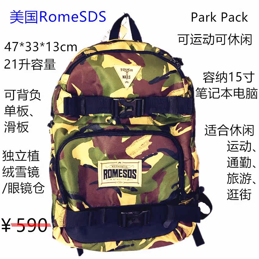 Backboard skateboard sports backpack shoulder green camouflage US RomeSDS Park Pack special price