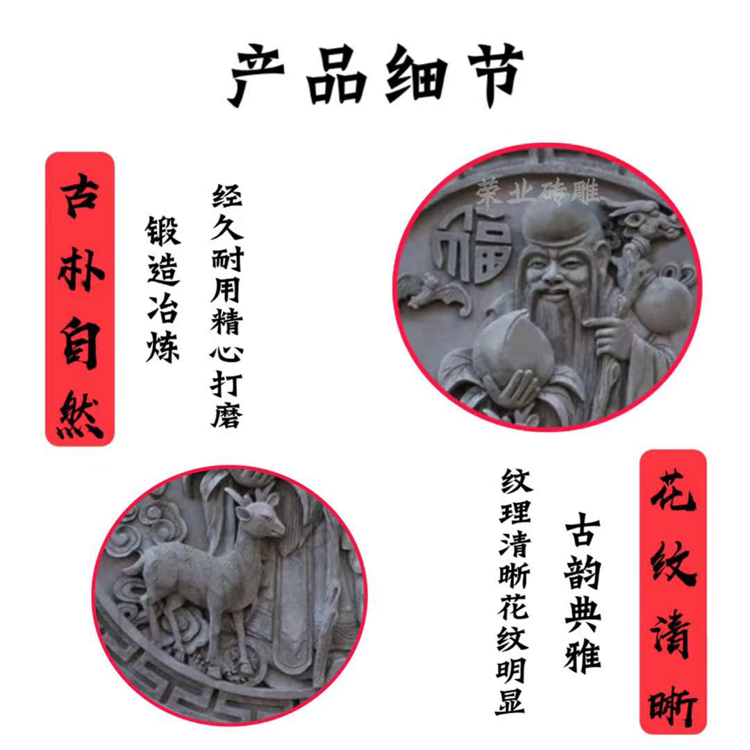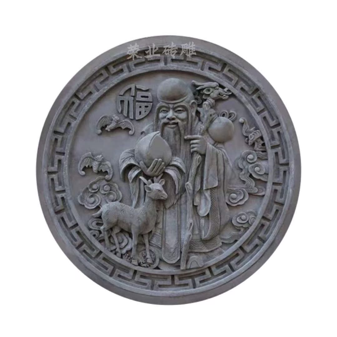 Antique Brick Carving Fu Lu Shou Brick Carving Welcome Wall Round Relief Cement Carving Synthetic Brick Carving Three-dimensional Pattern Brick Carving