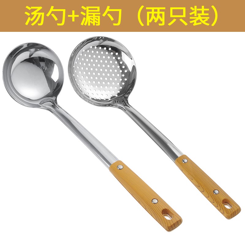 Stainless steel imitation wood handle kitchen spoon shovel Kitchenware cooking spatula shovel spoon colander Full set of cooking tools