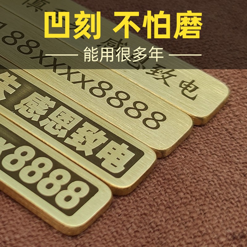 Silver-gun black brass wire drawing rectangular stainless steel wire drawing rectangular stainless steel small number special custom-made special selfie (brass convex engraving)
