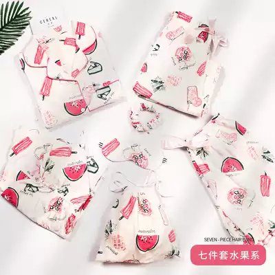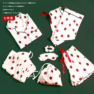 Seven-piece pajamas women's spring, autumn and winter pure cotton thin sexy suspender chest pad summer two-piece suit home clothes