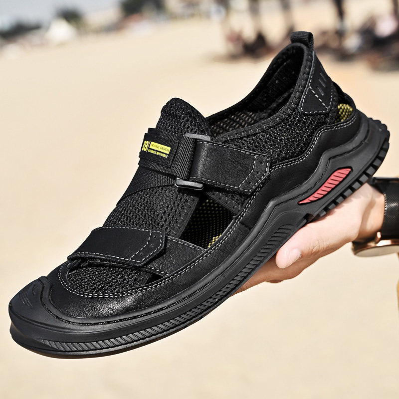 West Domain Camel Sandals Men Genuine Leather Summer 2022 New Net Face Breathable Outdoor Casual Bag Head Beach Shoes