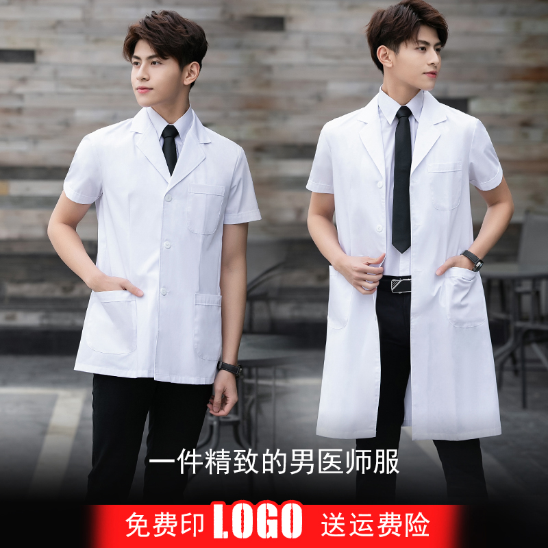 White coat work clothes medical white coat men's small coat short-sleeved half-sleeved long and short section doctor lab coat summer thin section