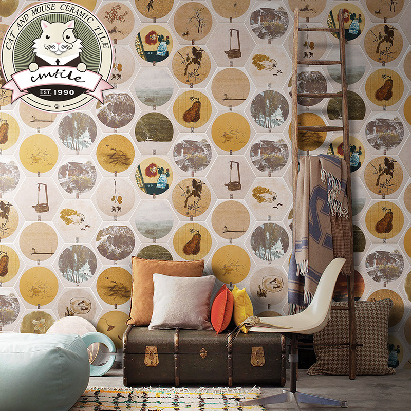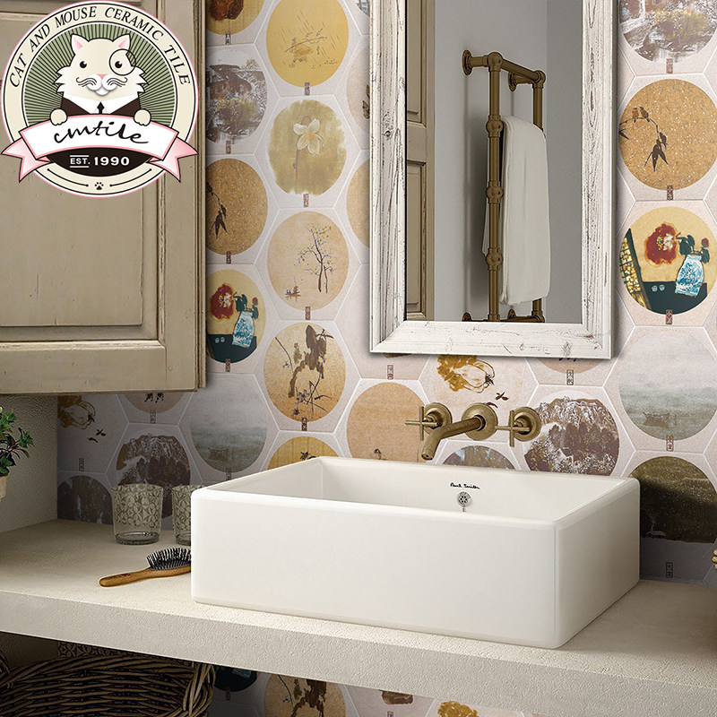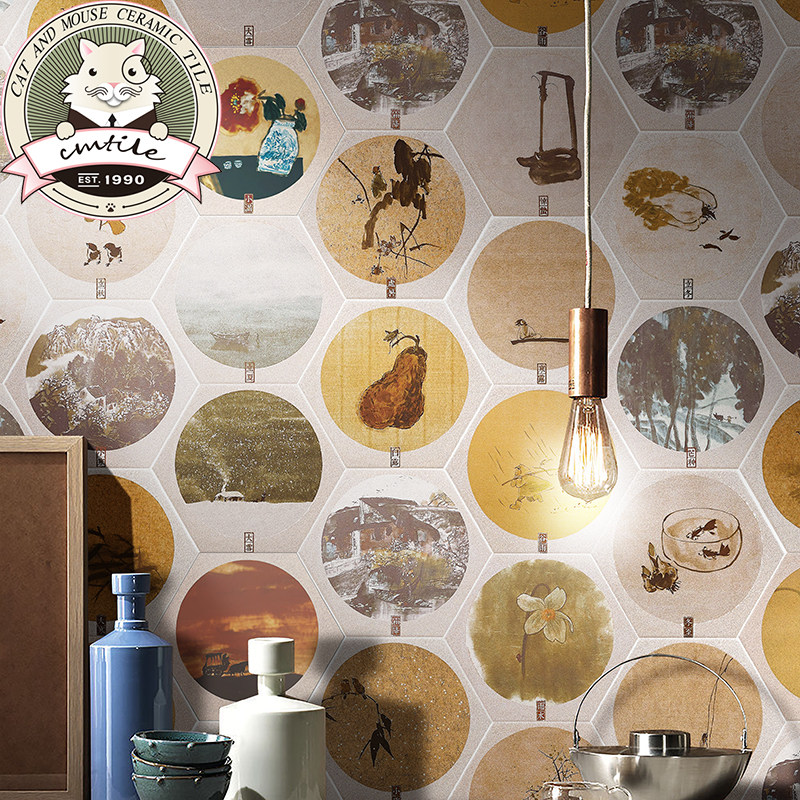 Twenty-four solar terms hexagonal tiles Chinese style hexagonal tiles kitchen bathroom bathroom wall tiles non-slip floor tiles retro tiles