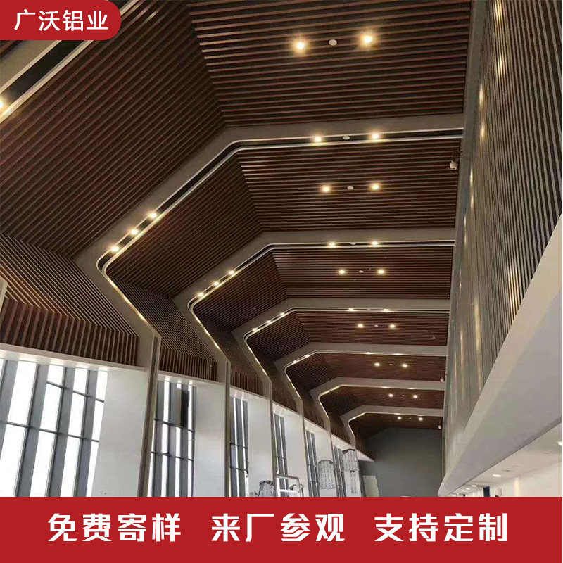 Aluminum square pass suspended ceiling Wood grain aluminum square tube partition Aluminum grille suspended ceiling u-groove curved aluminum square pass commercial exterior wall