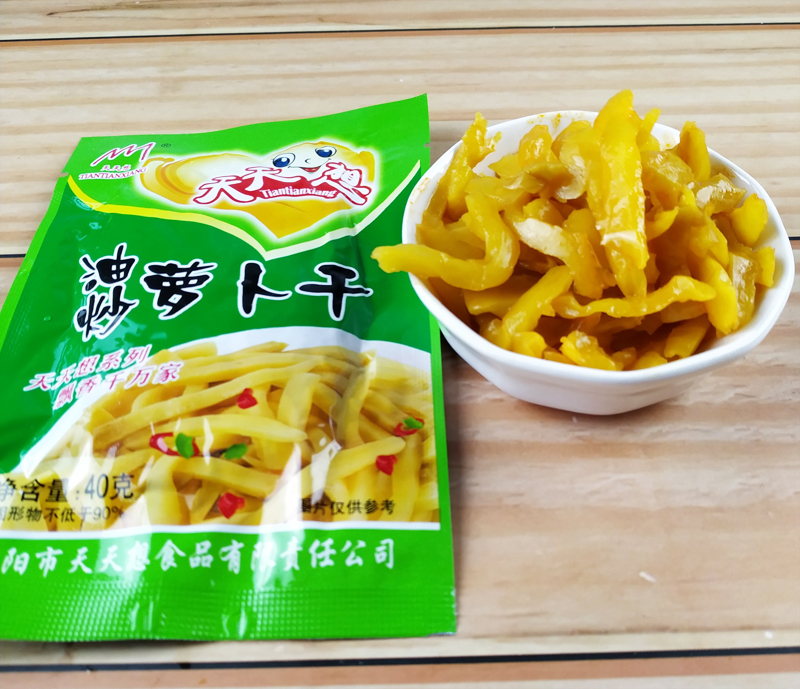 40 gr * 10 bags every day want to be fried in oil and radish dry for 40 gr appetizers for a little pickle of pickles.