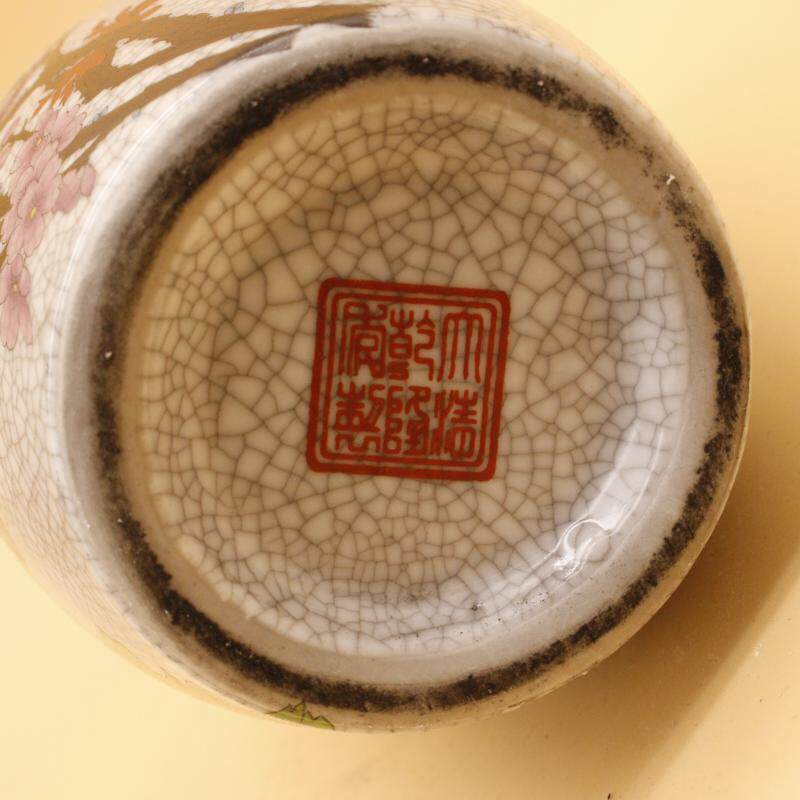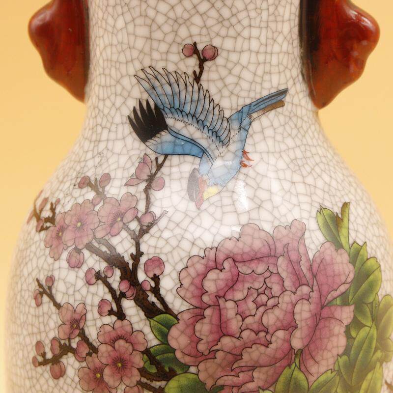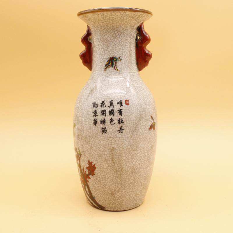 Qingganlong famille rose flower and bird picture elephant ear bottle home display cabinet antique antique decoration decoration old goods