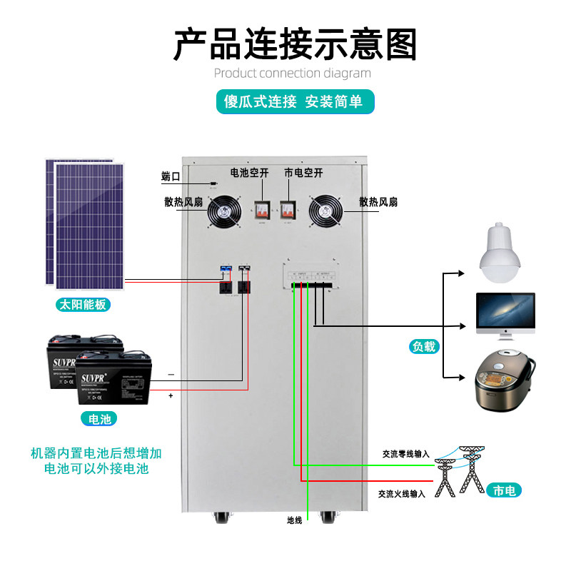 Solar photovoltaic power generation systems Home solar panels 220v6000w can be equipped with air-conditioning water pump generator equipment