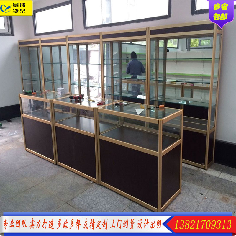 Shelf showcase custom titanium alloy glass showcase Cosmetics tobacco and alcohol jewelry showcase Item showcase