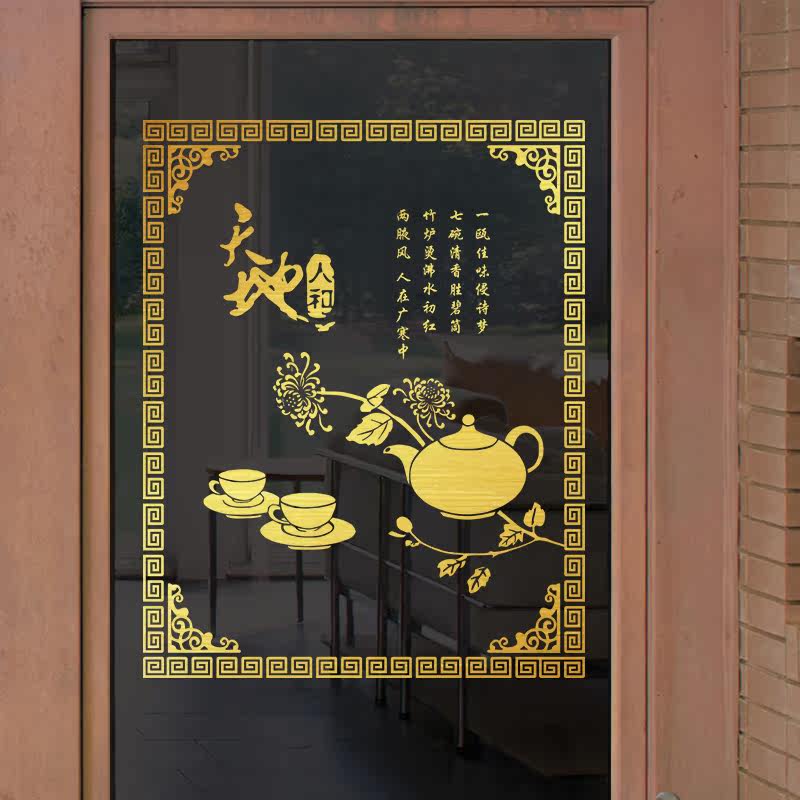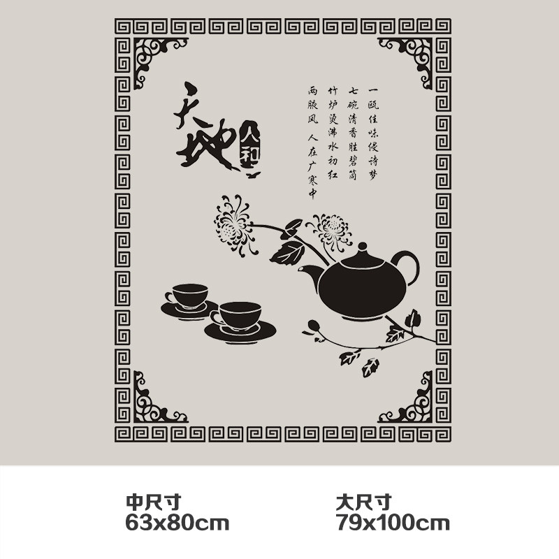 Water moon mirror flower tea ceremony tea culture background wall stickers tea room background wall decoration living room tea shop wall stickers
