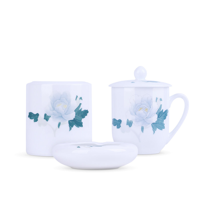 Ling-ling Porcelain Glaze Under five color ceramic stationery Three sets of tea cups Tobacco Ashtray Pen Holder Office Supplies set of tea set