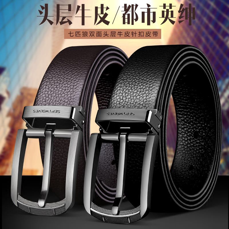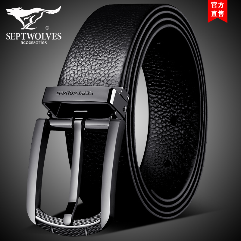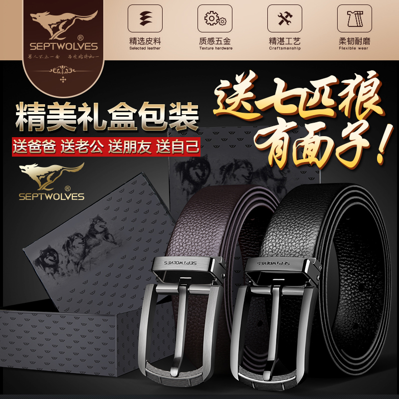 Seven Wolf Belt Men Leather Needle Closed Pure Coal-leather Han Edition Youth Leisure Simple Current Student Belt