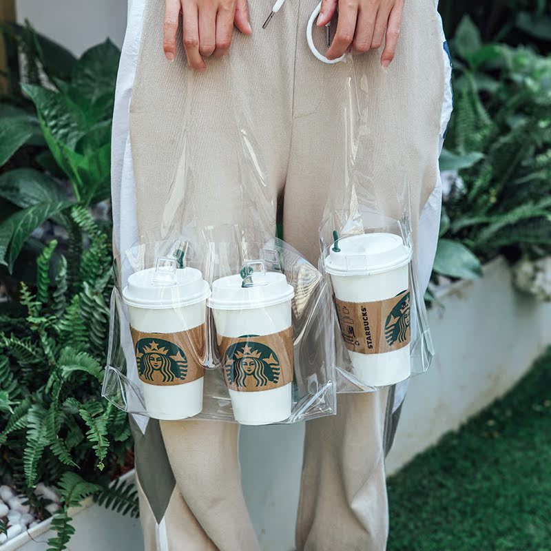 Transparent bag PVC hand milk tea coffee drink containing advertising plastic bag custom logo print