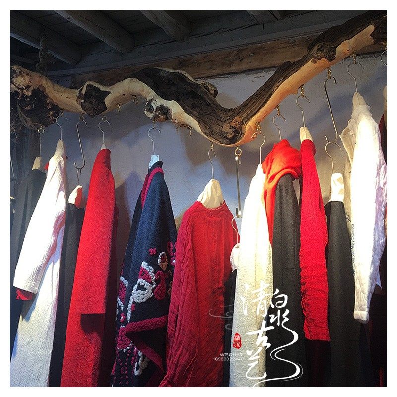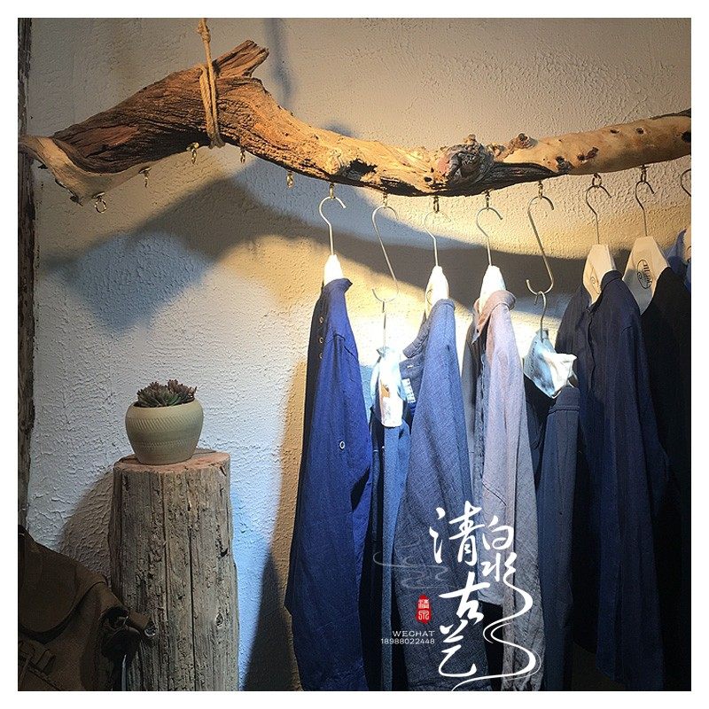 Clothing store retro solid wood hanging clothes ornaments shelf simple hook display rack display shelf