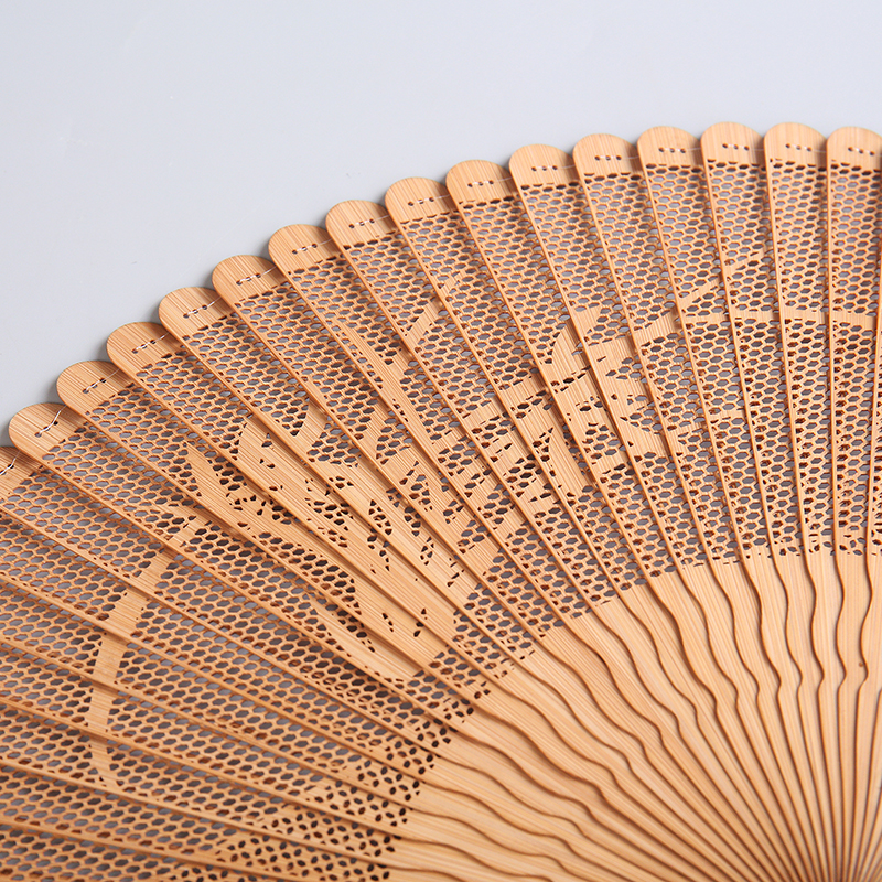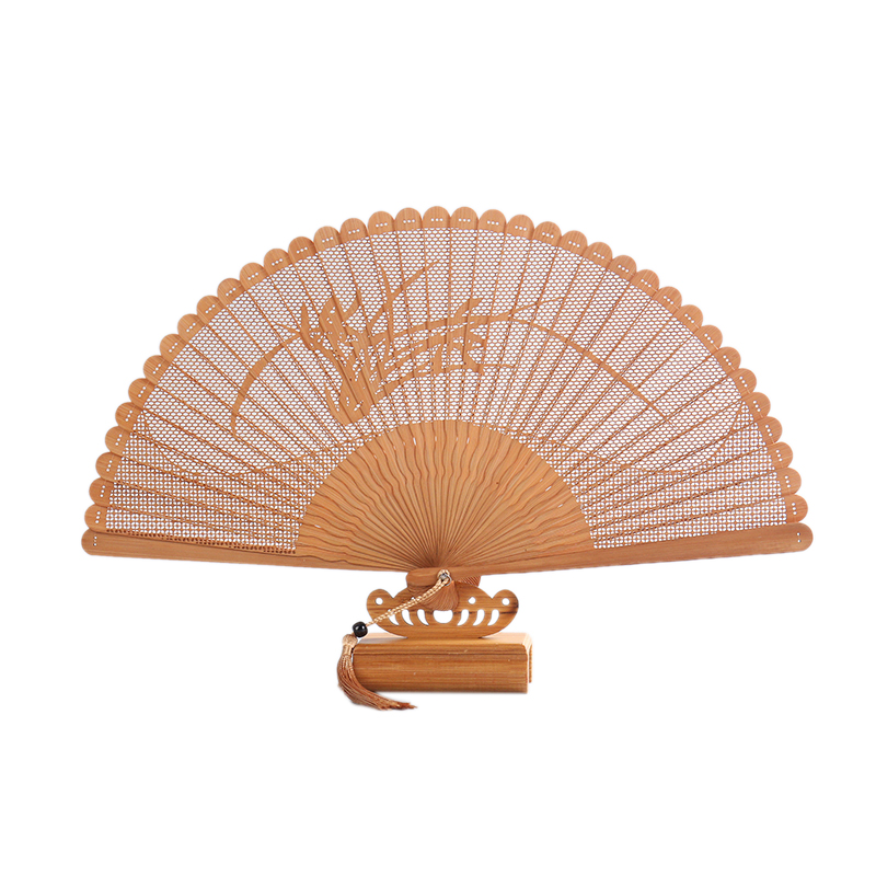 Melan Bamboo Chrysanthemum High-end Folding Fan Hollowed-out Bamboo Fan Carved Flower Gift Fan with gift box and wind fan day style fan