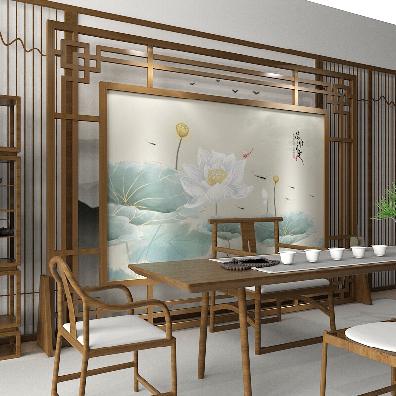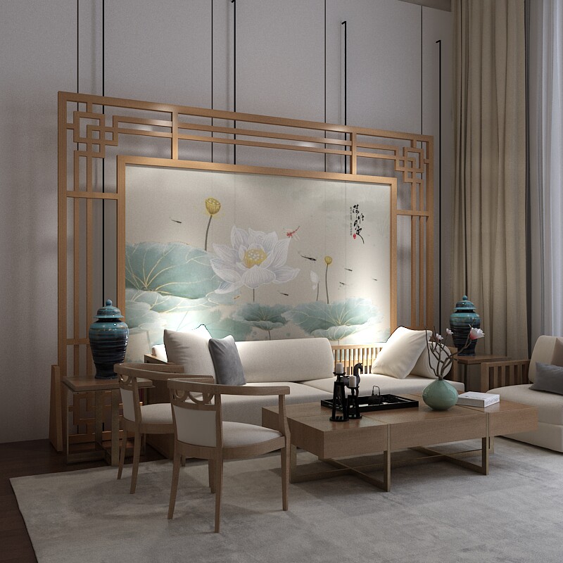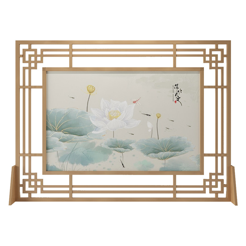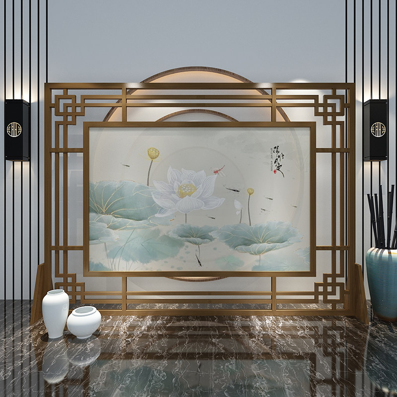 New Chinese solid wood hollowed-out screen partition living room hotel dining hall Xuanguan seat screen semi-transparent yarn quality screen can be moved