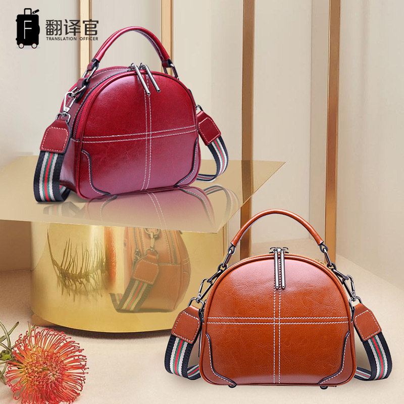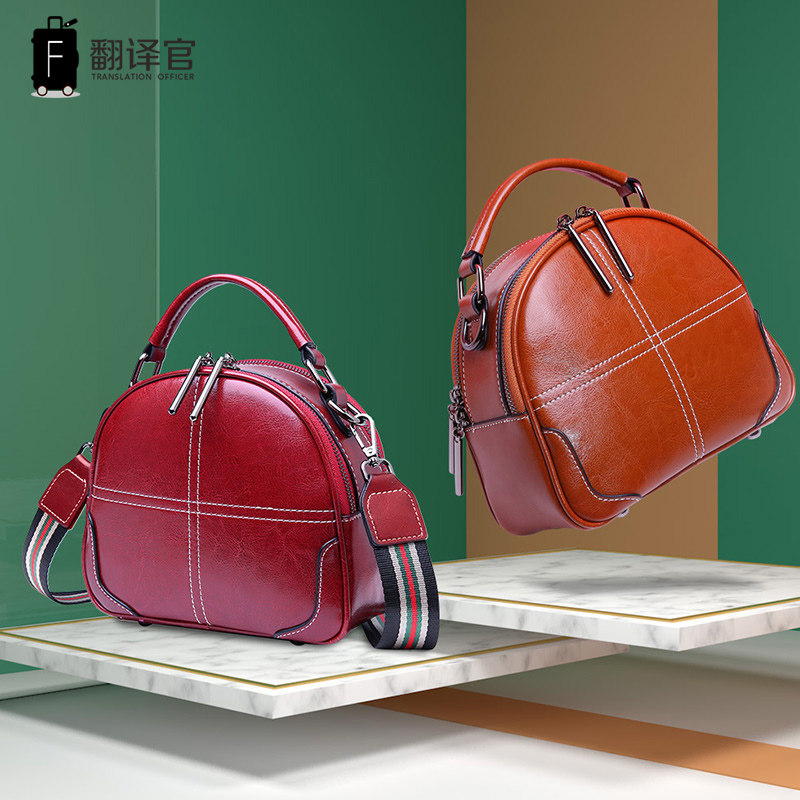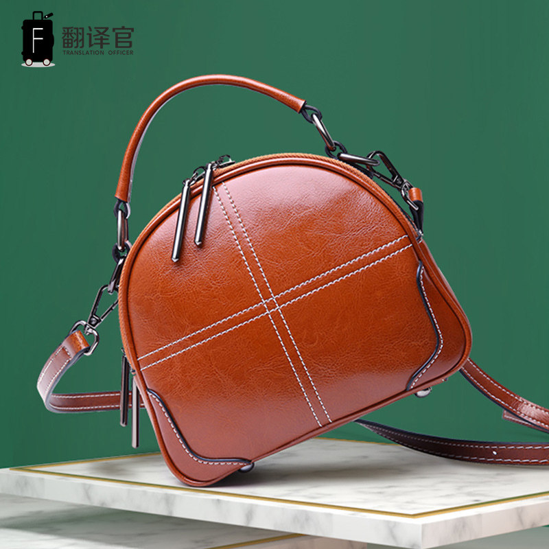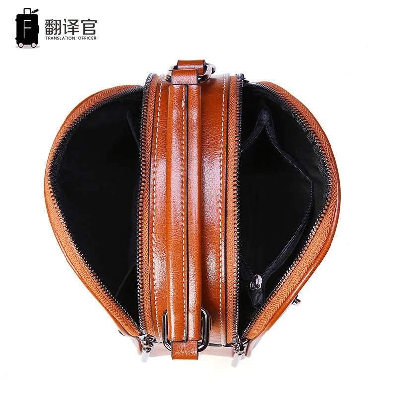 Translator Women's Bags Leather Shoulder Bags Messenger Bags Women's Leather Handbags Retro Small Round Bags Hand Carry Backpacks