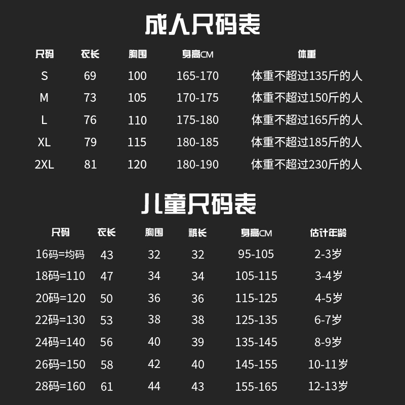 One size 110 120 130 140 150 160 S M L XL XXL