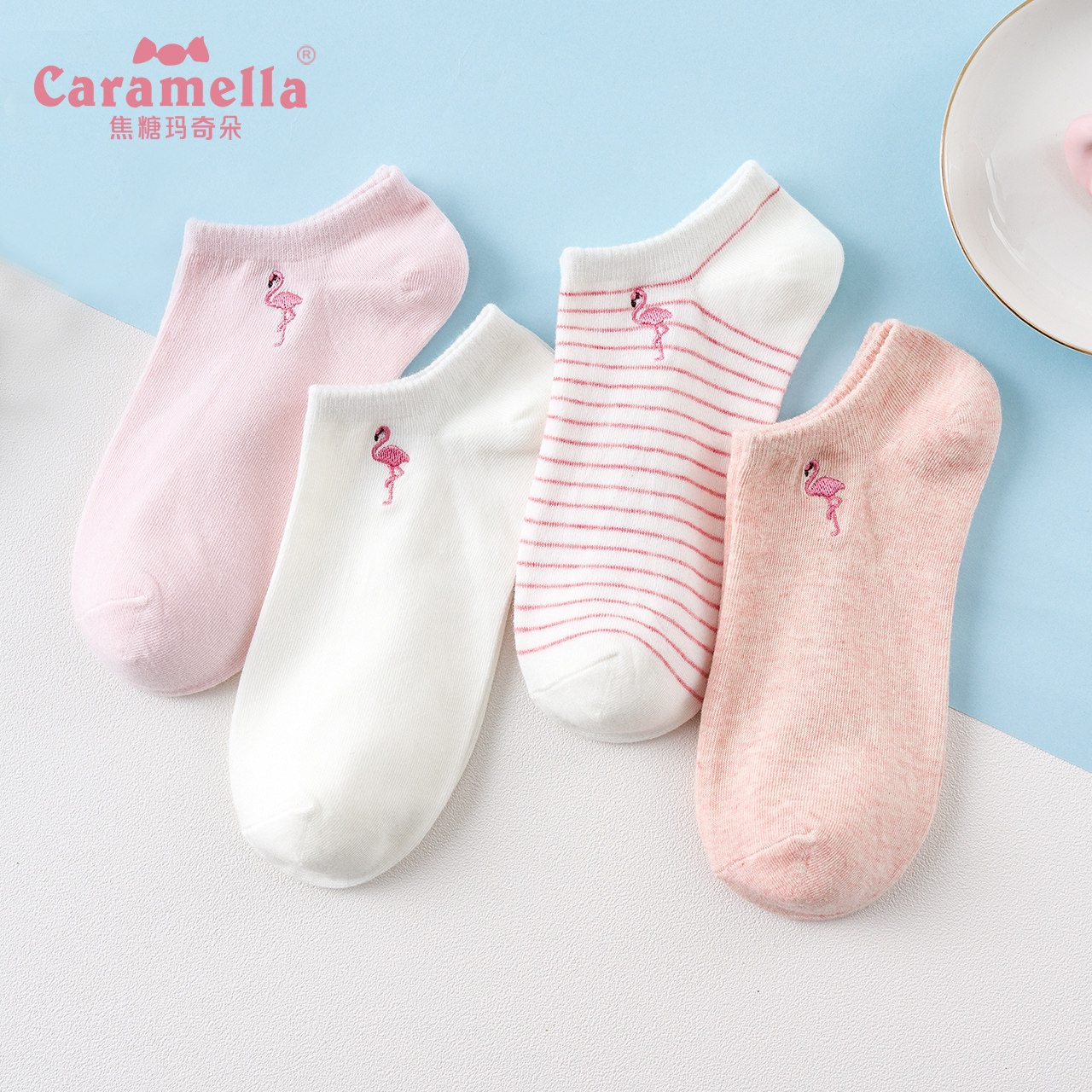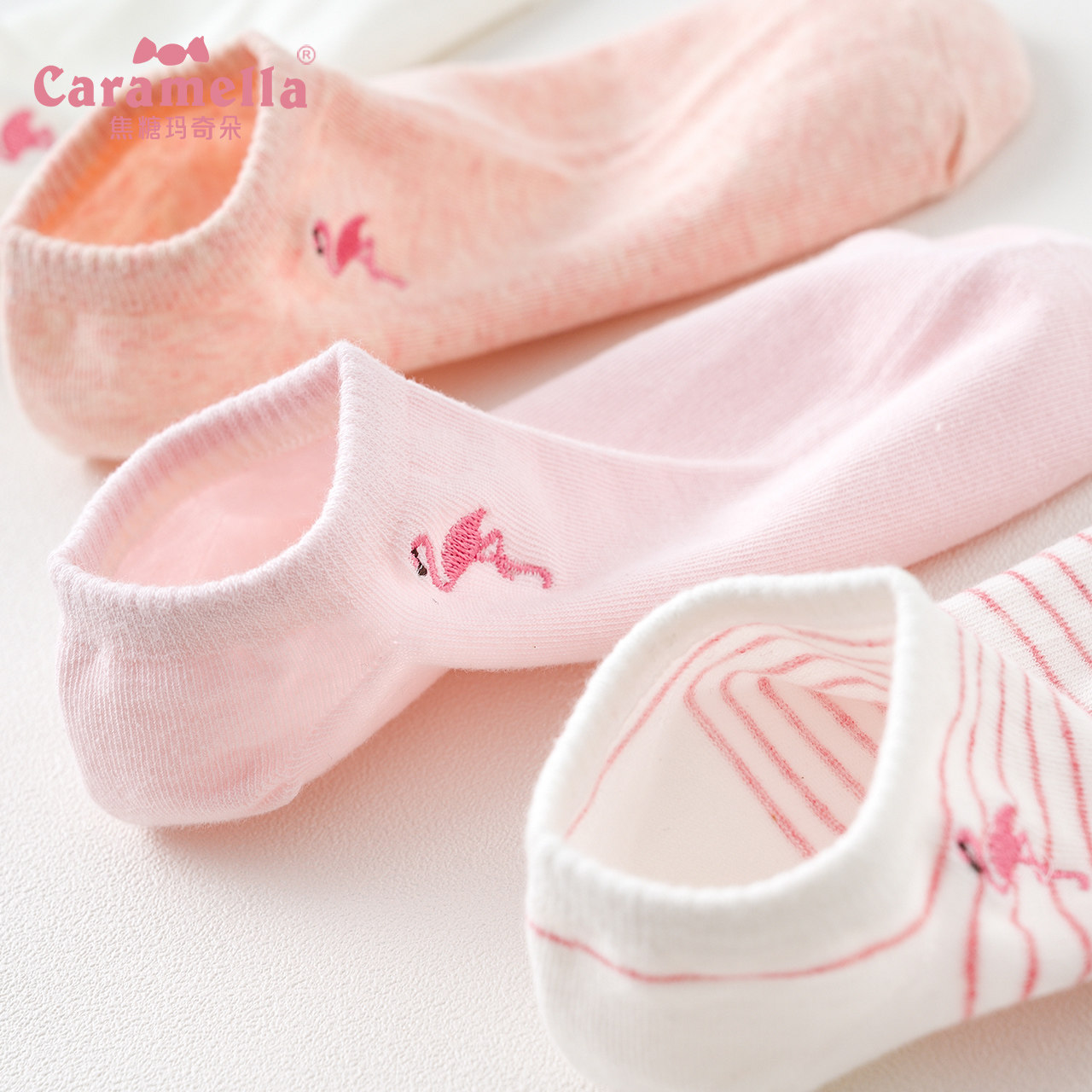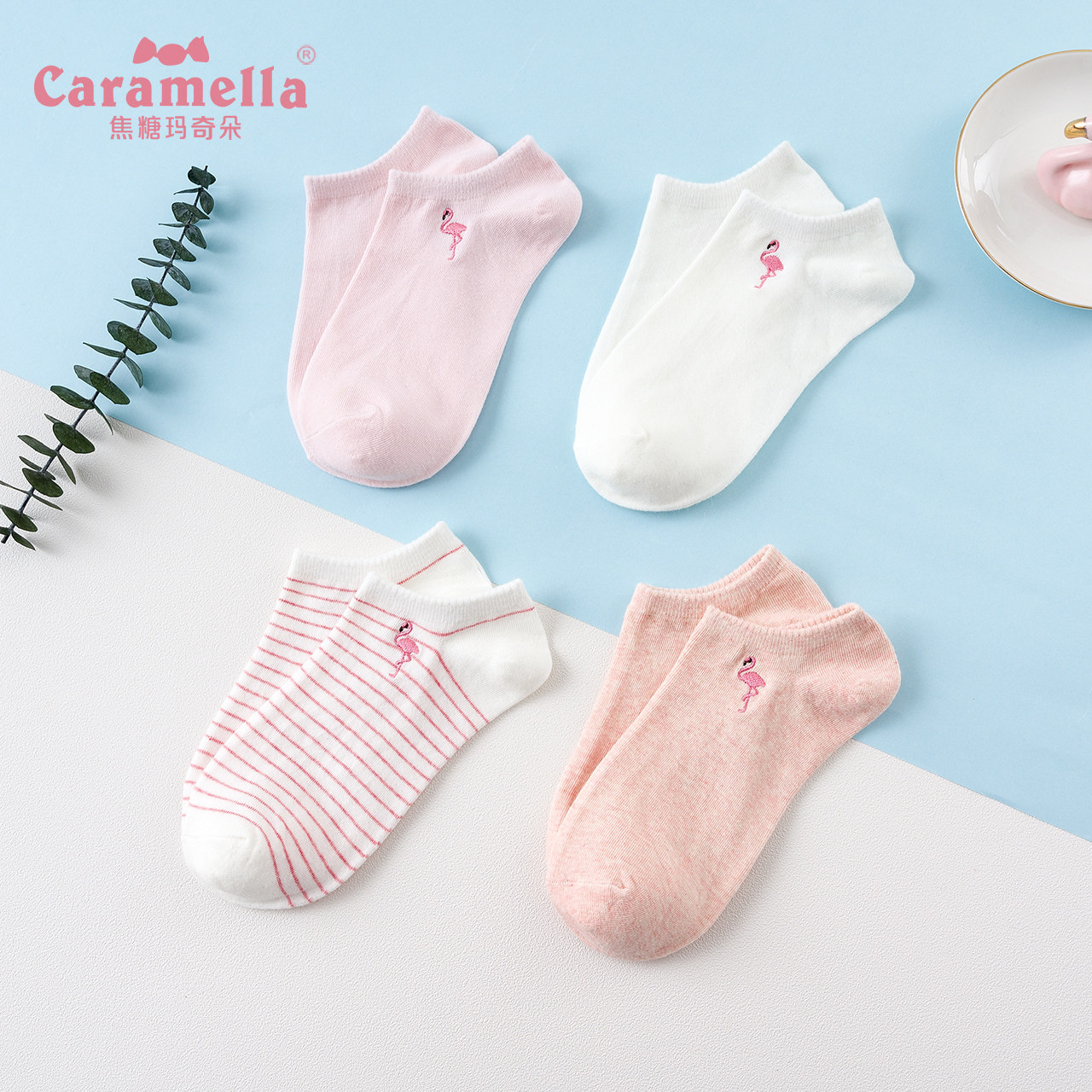 CARAMELLA FEMALE SHORT DRUM COTTON SOCKS LOW Shallow Mouth Pure Color Embroidered Lady Striped Cotton Socks Invisible Socks Thick