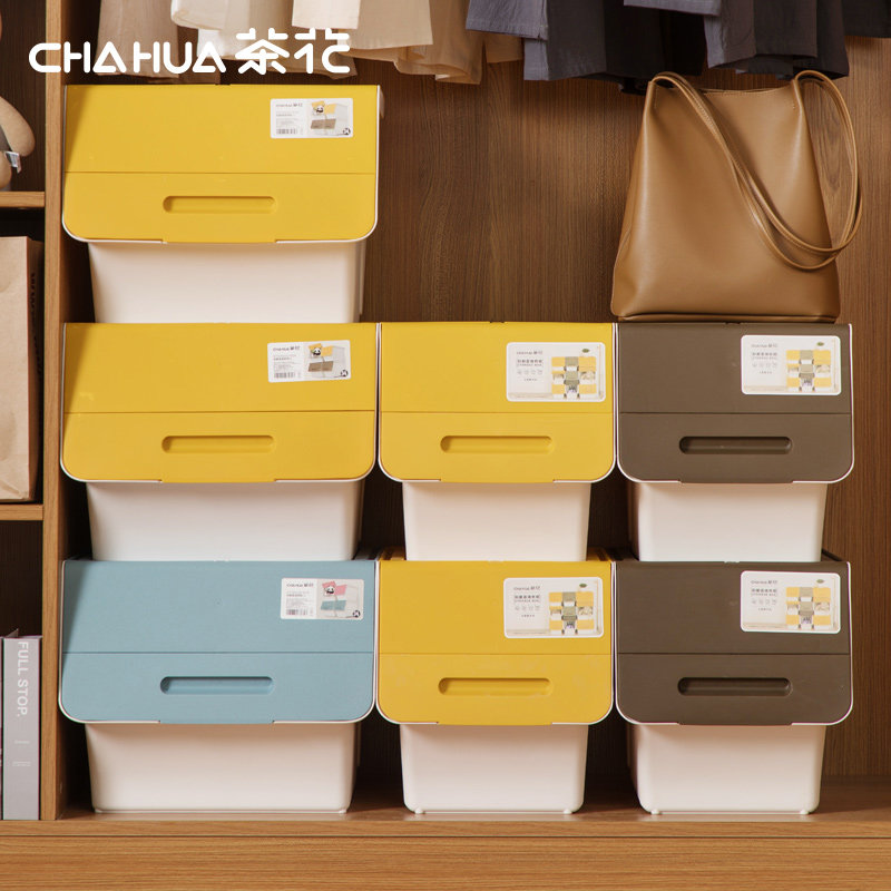 Tea flower front open clamshell containing box plastic side opening finishing box toy containing box storage large number underwear sweater