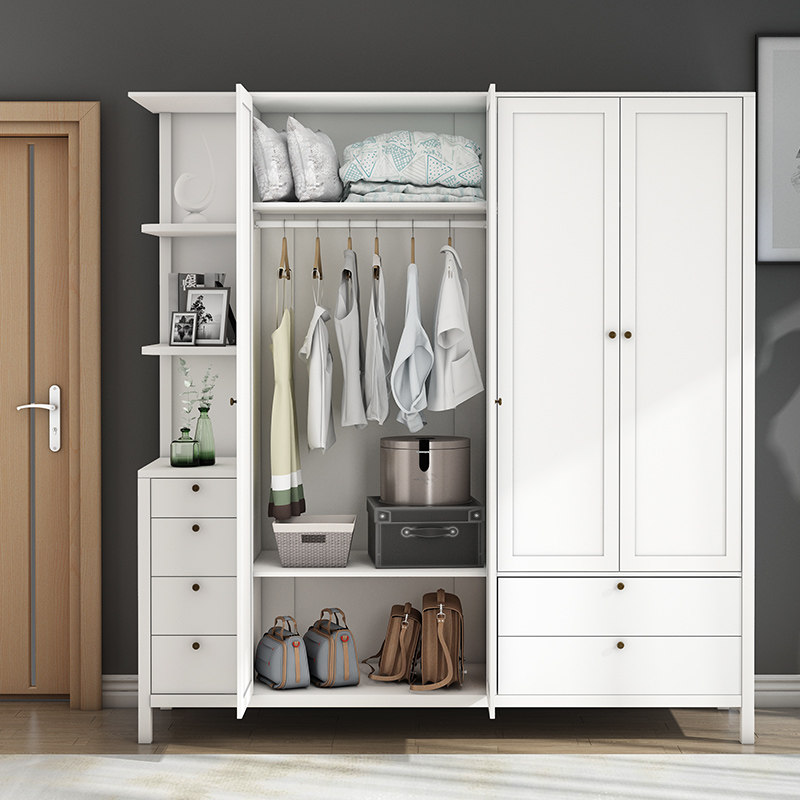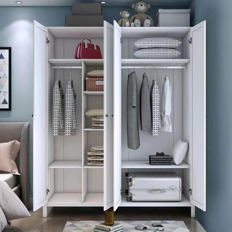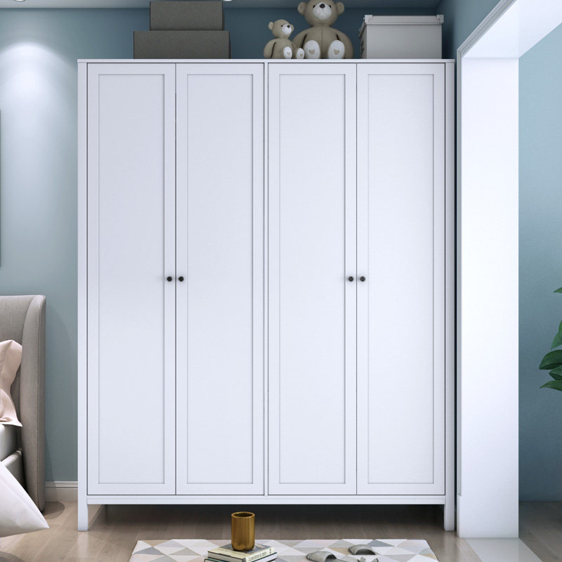 Modern Brief About Two Doors Wardrobe Flat Open Door Children Solid Wood Wardrobe Three-Four Doors Small Family Bedroom Storage Closet