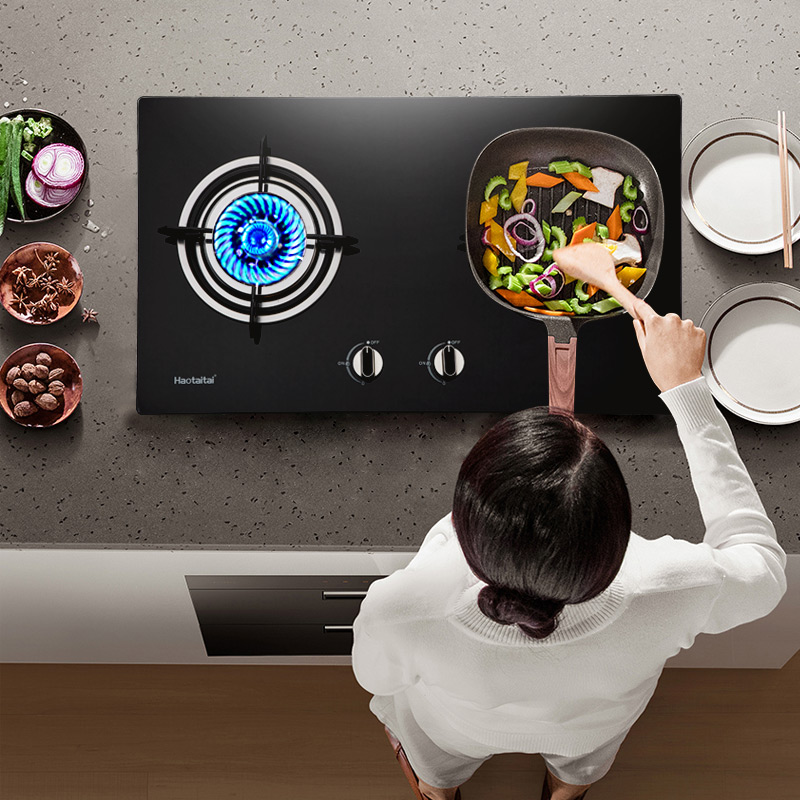 Good wife Gas stove Home Double-mouth gas stove tempered glass 4 8kW natural liquid gas hearth Hearth Insert 2192B