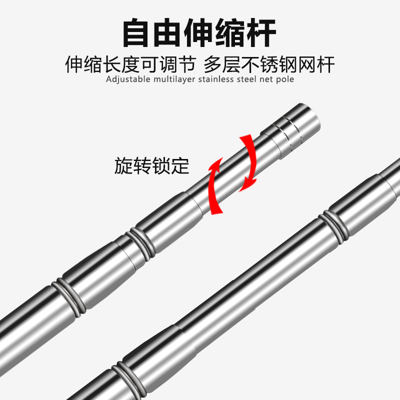 Stainless steel fishing net Telescopic fishing net rod fish net foldable fishing net head net pocket rod operating net rod fish net pocket
