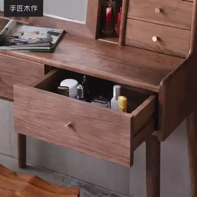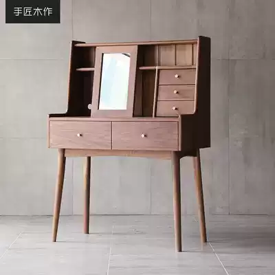 Hand craftsman wooden Nordic black walnut wood all solid wood minimalist log dressing table bedroom makeup table mirror small apartment