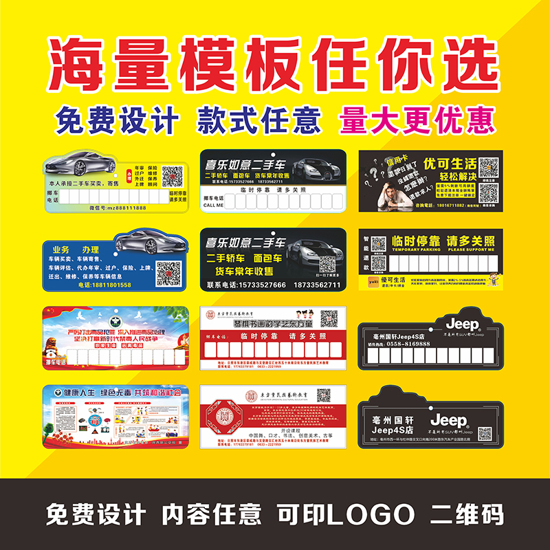 Temporary parking card custom paper plastic insert car card loan advertisement customized PVC door hanging card transfer car number plate