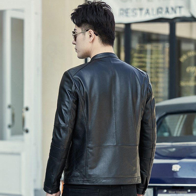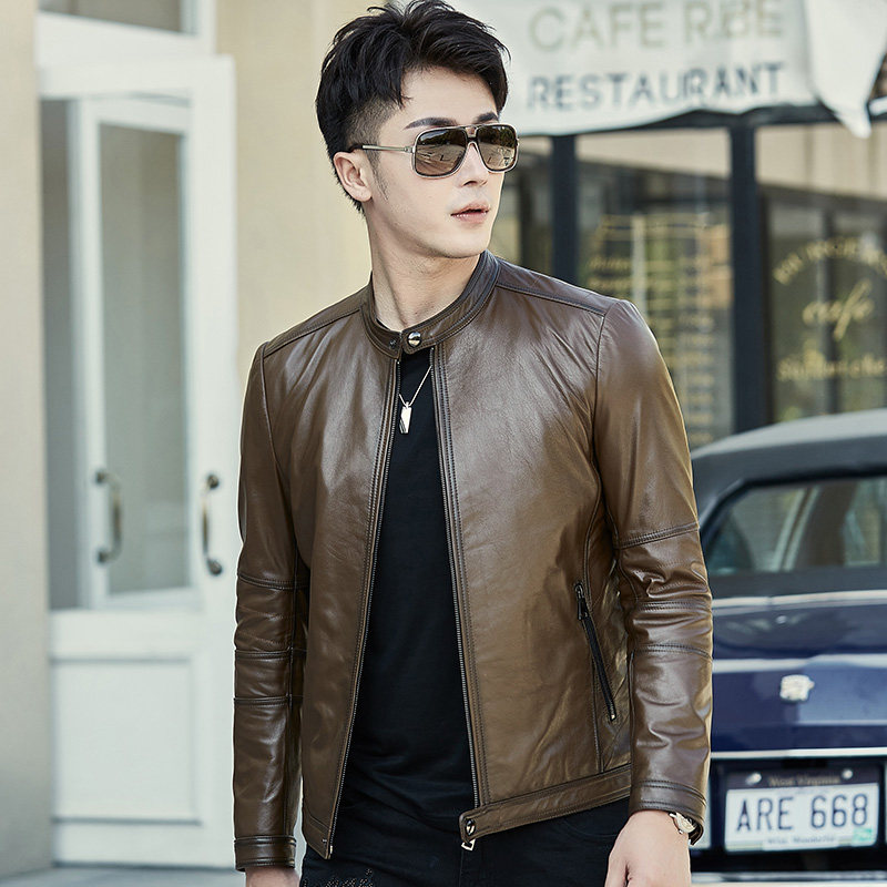 2021 Fall new Hainen genuine leather leather clothing Male Short Neckline Head Layer Cow Leather Jacket Locomotive Thin jacket