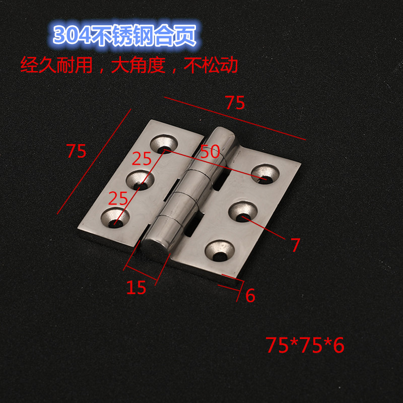 Stainless steel hinge 304 thickened heavy hinge chassis cabinet distribution box ship hardware hinge 75*75*6