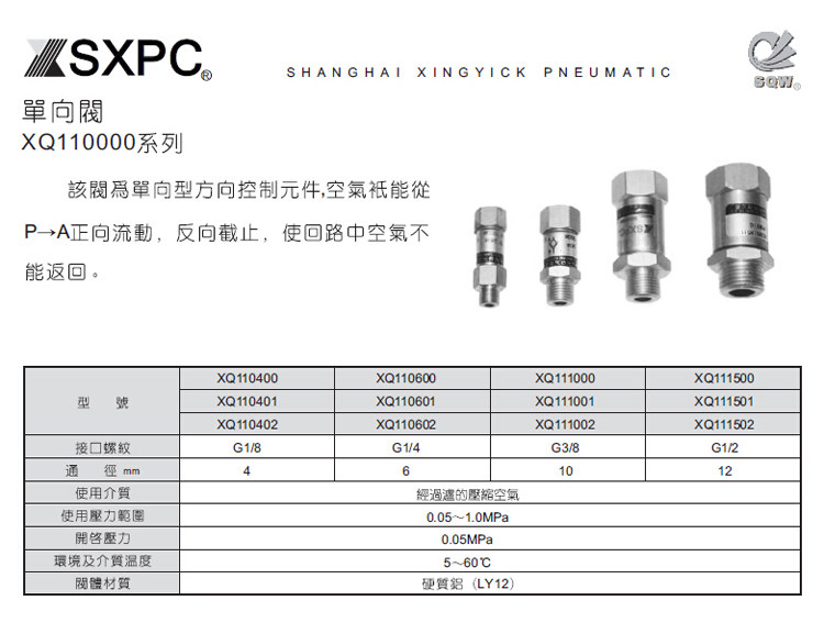 SXPC Shanghai Xinyi XQ110402 XQ110602 XQ110602 XQ111002 XQ111502 external thread stop inverse valve