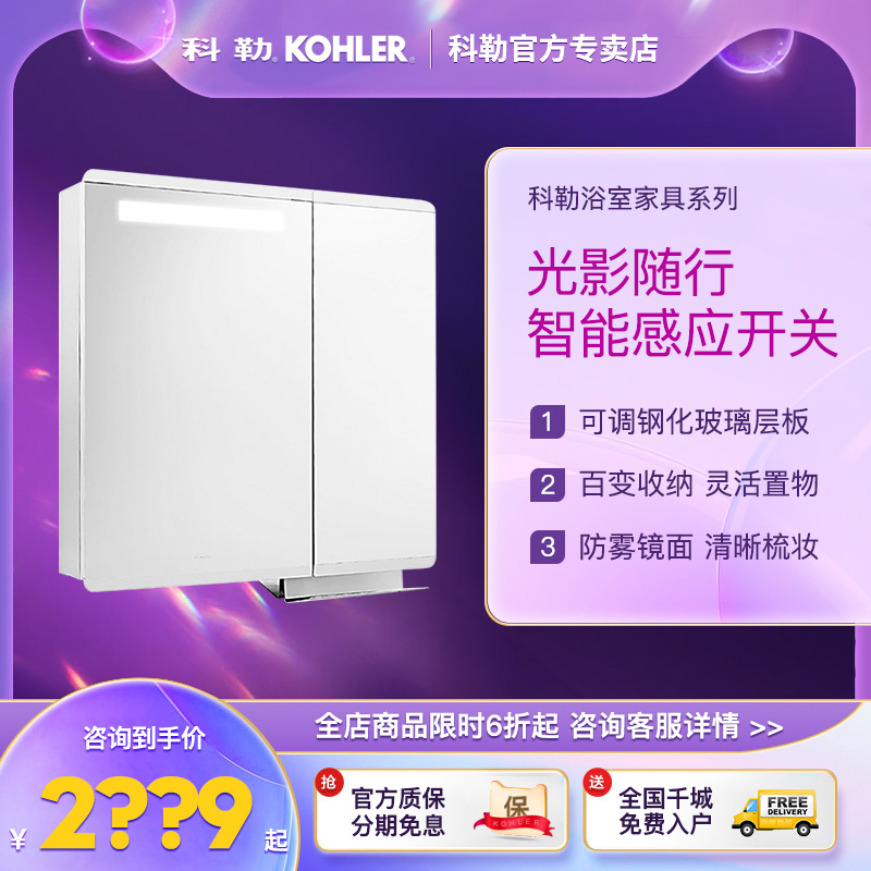 Koehler Bathroom Intelligent Mirror Cabinet Lled With Lamp Modern Bathroom Makeup Room Wash Terrace Anti-Fog Mirror Cabinet K-30012T