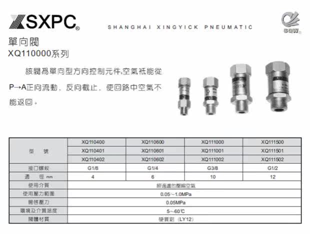 SXPC Shanghai New Yiyi XQ110400 XQ110600 XQ110600 XQ111500 XQ111500 one-way valve