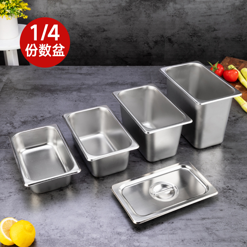 Stainless steel serving basin with cover milk tea shop jam box ice cream rectangular basin fraction box dish spicy hot selection vegetable basin