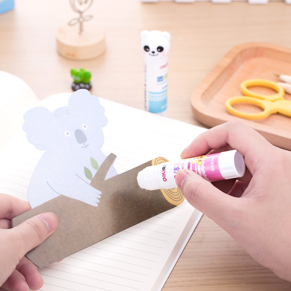 Deli solid glue student cute cartoon animal avatar Children's handmade solid glue stick solid glue 6366