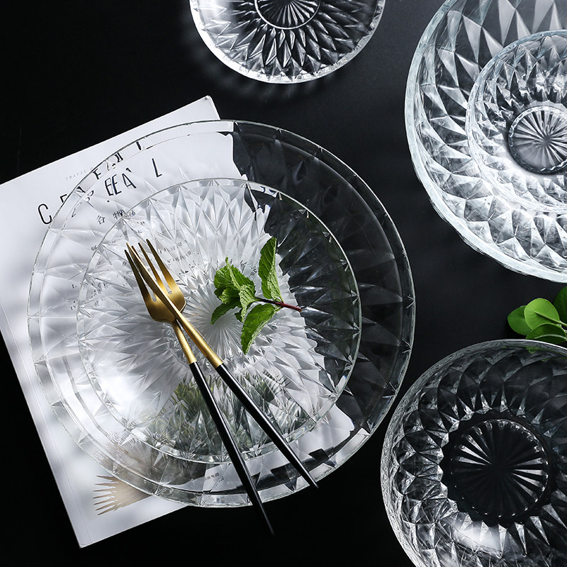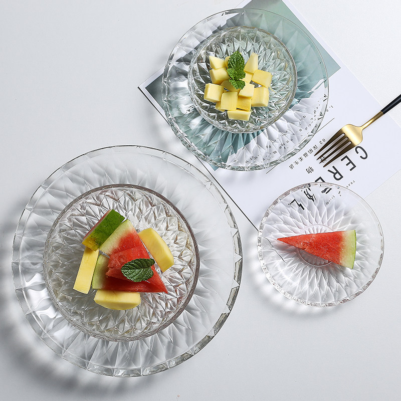 Fruit tray glass dishes Home KTV Creative modern Living room Transparent Diamond disc Size Number suit dried fruit tray
