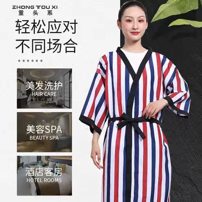 Hair salon customer service hair salon guest robe hair cutting kimono striped hair salon high-end hair coloring customer service waterproof hair dressing clothes