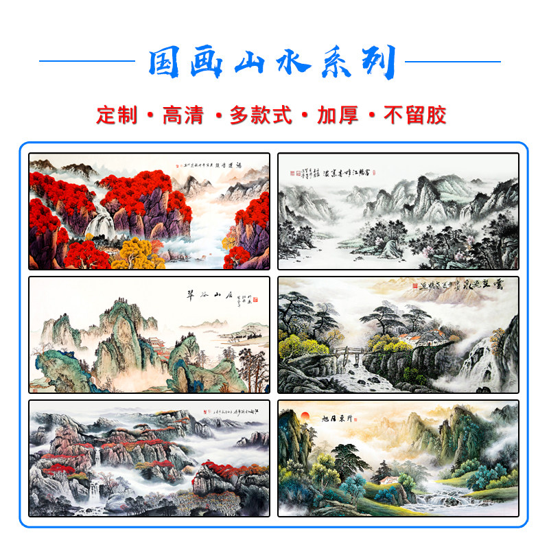 Fish tank hanging painting paper HD custom Hongyun Dangtou Chinese painting Water Feng Shui fortune office calligraphy and painting color god new