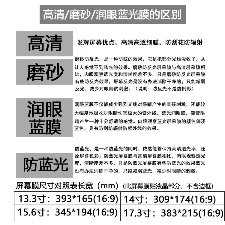 15 6 inch HD anti-scratch soft film 1 piece 15 6 inch frosted anti-reflective soft film 1 piece 15 6 inch eye moisturizing blue film 1 piece 15 6 inch HD anti scratch soft film 2 pieces 15 6 inch