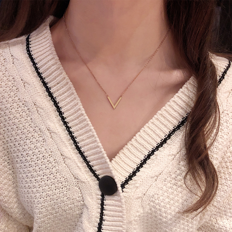 Rose gold v-character female necklace female tide Net red ins simple temperament collarbone neck fine luxury niche titanium steel pendant