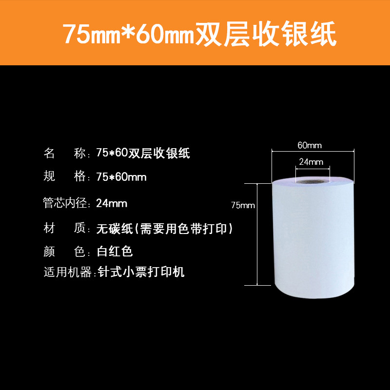 75x60 double layer replication without carbon press needle printing paper 75*60 two layers of cash cash paper KTV pharmacy dedicated