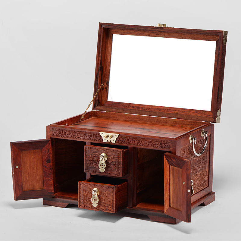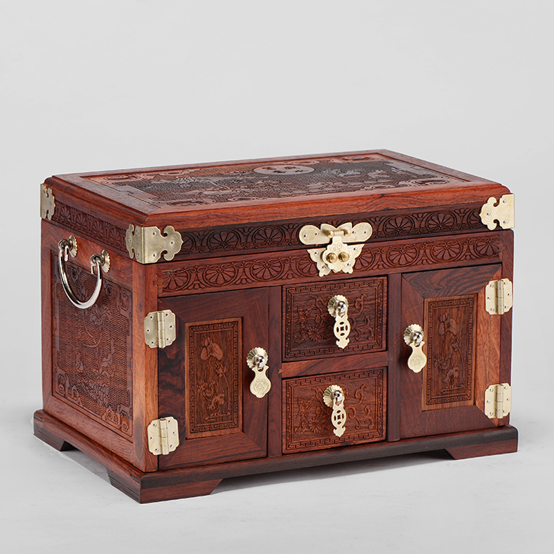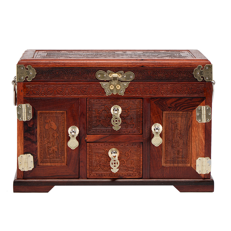 Large Red Acid Branch Forbidden City's Forbidden City's Forbidden City's Ancient Wind Dressings box Hongmu China Wind Chinese wood Hundred Treasure Chest Court with lock