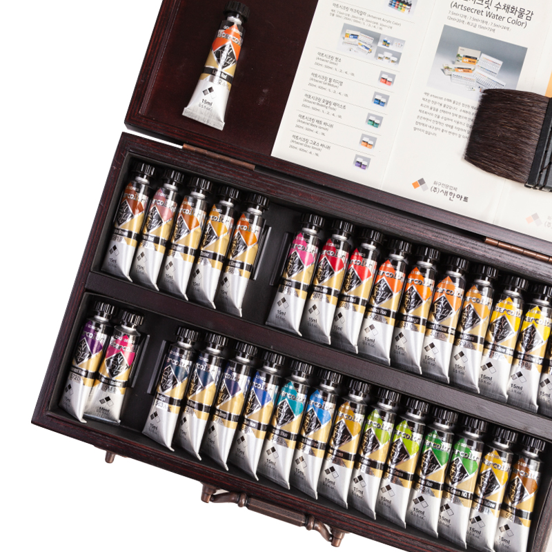 Master Watercolor Paint Korea ArtSecret 32 Colors 15ml Premium Wooden Box Gift Paint Set