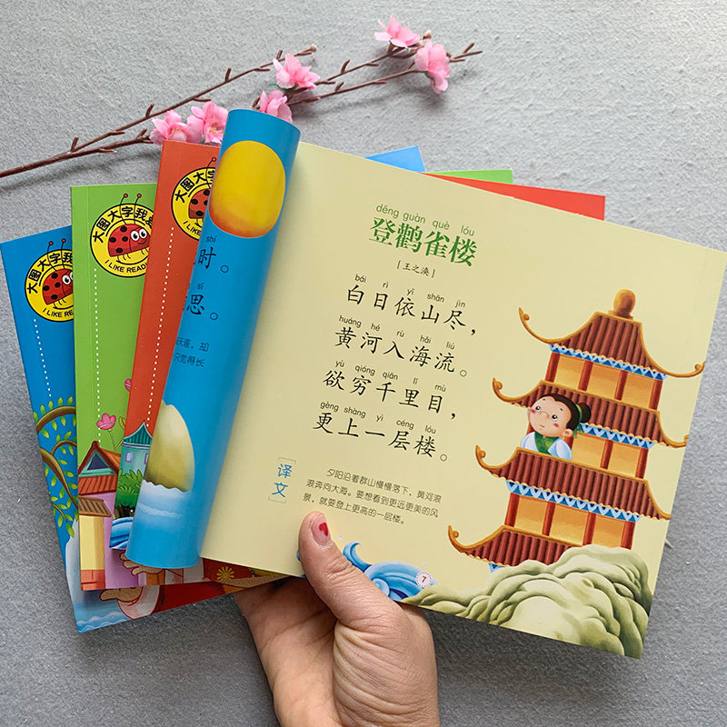 Disciples gauge Three words by Tang Poetry Three-out-of-three-color pattern notes Genuine Young Children Early Teach Baby Country Schoolboy Hundreds of children Last name Full 4 Books The baby 0-3-year-old ancient poetry book Big picture book Painted Book Storybook storybook