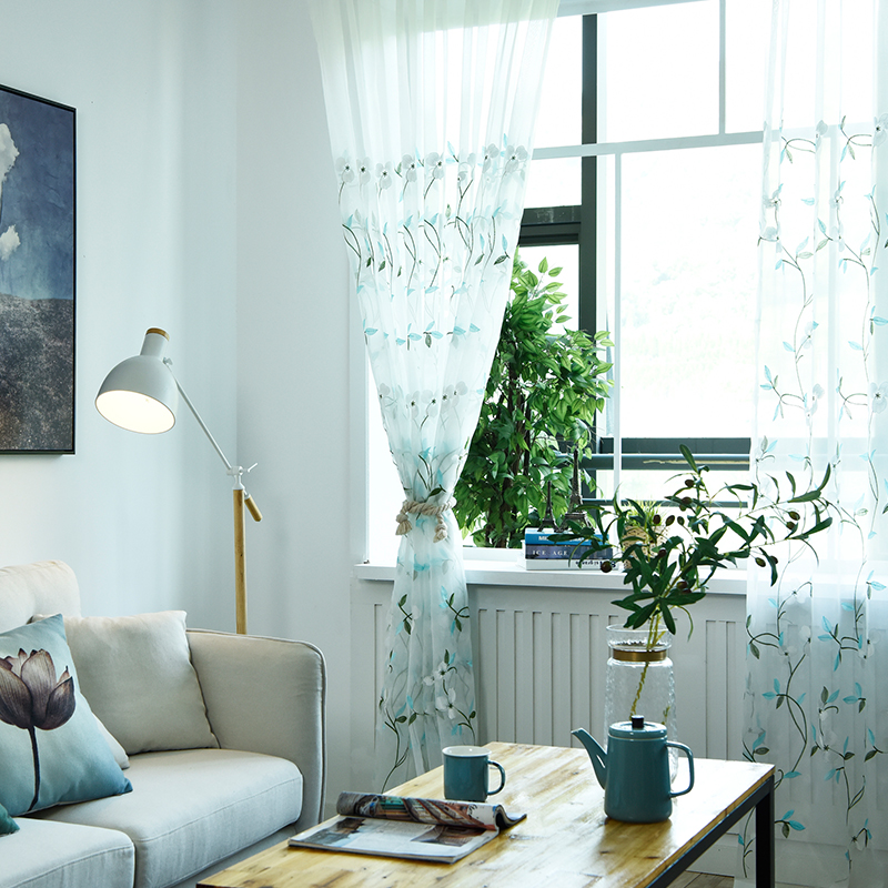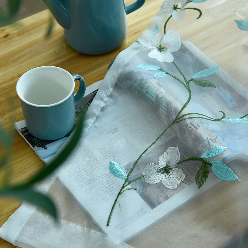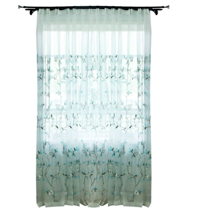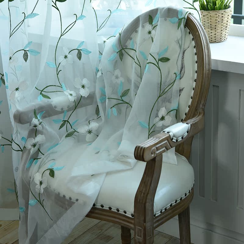 Zhejiang fabric pastoral embroidered gauze curtain bedroom living room bay window transparent gauze curtain leaf small fresh curtain