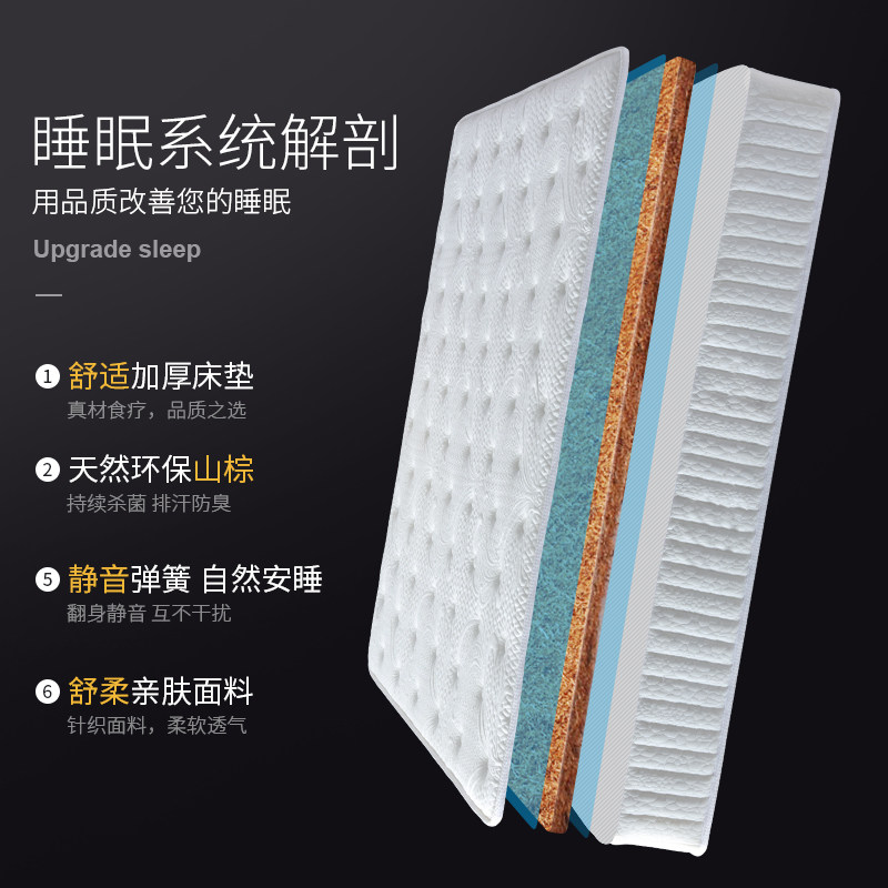 Diep 1 5 m mute spring natural mountain palm mattress plus brown mattress Home comfort 1 8 m mattress furniture