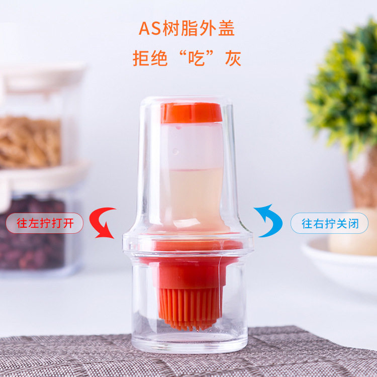 Japan silicone oil brush Kitchen household baking high temperature extrusion one-piece pancake barbecue brush with lid oil pot brush
