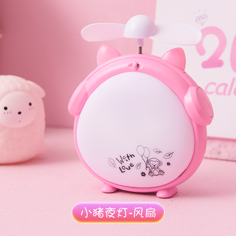 Net Red Piglet Fan Small Shake Sound The Same Portable Student Cute Cartoon Teenage Girl Hearts Small Night Light Electric Fan