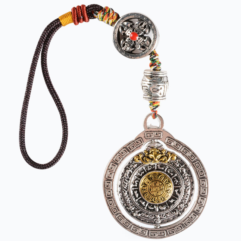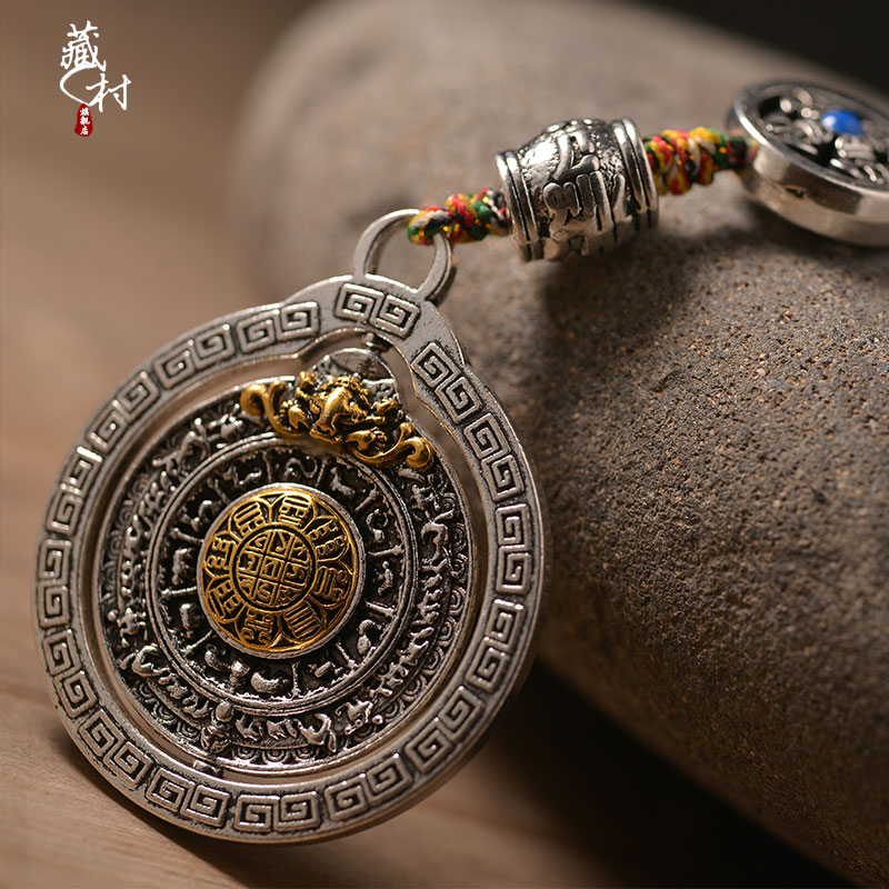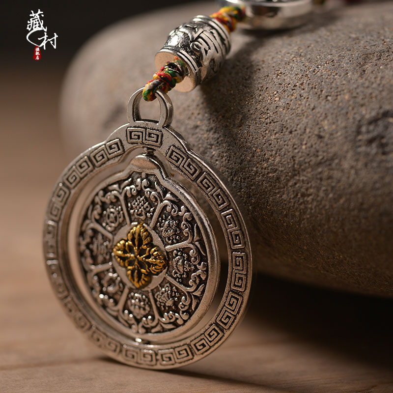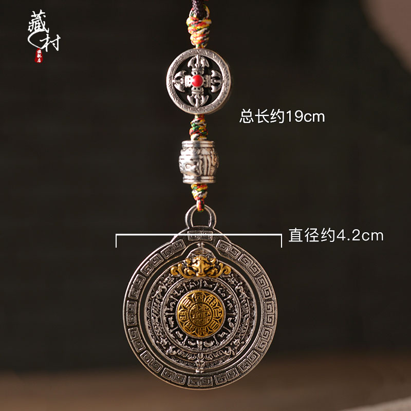 Tibetan village Tibetan bronze sculpture rotatable zodiac nine palace Bagua waist card Alloy eight auspicious pendant jewelry